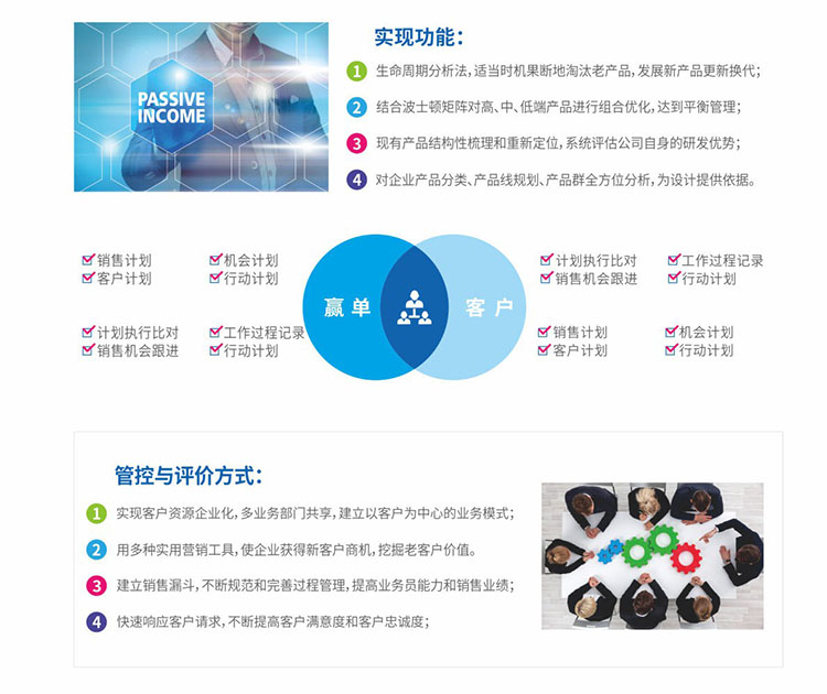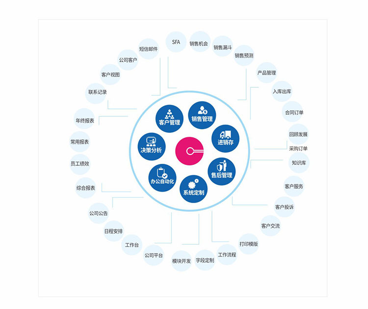 系統(tǒng)特色:實(shí)現(xiàn)360度全面了解客戶,通過客戶視圖不僅可以了解客戶的基本信息、聯(lián)系信息,了解客戶的業(yè)務(wù)往來信息,對銷售機(jī)會進(jìn)行精確分析,甄別有價值客戶,從而加強(qiáng)跟單過程控制,提升簽約率。另外銷售跟進(jìn)與操作評價,有助于銷售團(tuán)隊的能力提升和潛能挖掘。